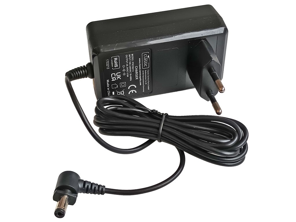 Nabíjecí adaptér je určen pro vysavače SHARK a poskytuje výkon 21W. Tento model nemá přívodní kabel a přímo se zapojuje do zásuvky (vstup EURO).