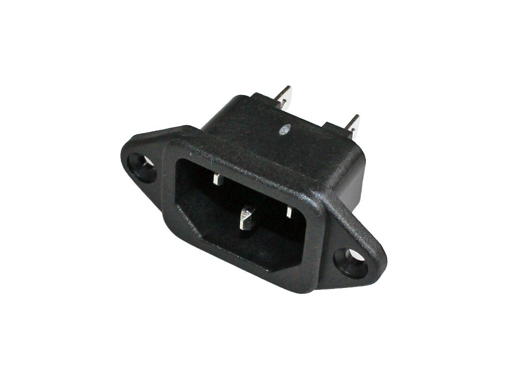 Napájecí konektor určený pro použití v počítačích a dalších elektrických zařízeních. Tento konektor splňuje standard IEC 60320 a je navržen pro jmenovitý proud 10A a jmenovité napětí 250V AC. Konektor je vybaven fastony pro snadnou elektrickou montáž a mechanickou montáž do panelu pomocí šroubování.