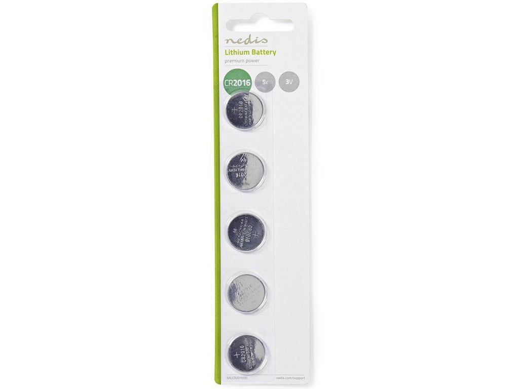 Nedis CR2016 Lithiová Baterie 3V - Balení 5ksTyto lithiové knoflíkové baterie CR2016 s dlouhou životností jsou ideální pro široké spektrum elektronických zařízení. Poskytují spolehlivý napájecí zdroj pro zařízení jako jsou dálkové ovladače, hodinky a další.