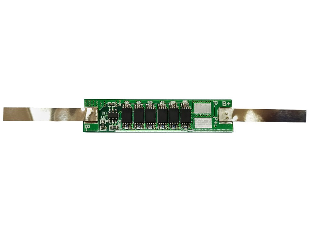 Ochranný a nabíjecí modul určený pro Li-Ion článek. Tento obvod se připojuje na páskové vývody a nabíjecí napětí se aplikuje na plošky plošného spoje.