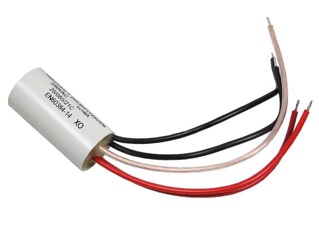 Odrušovací filtr s parametry 250V, 0.1uF + 2 x 2500pF, maximální průchozí proud 6A, 5 vývodů s pětivodičovým připojením a zapojením X2 - Y2. Délka kondenzátoru je cca 38 mm a průměr cca 18 mm. Je vyroben s důrazem na kvalitu a spolehlivost.