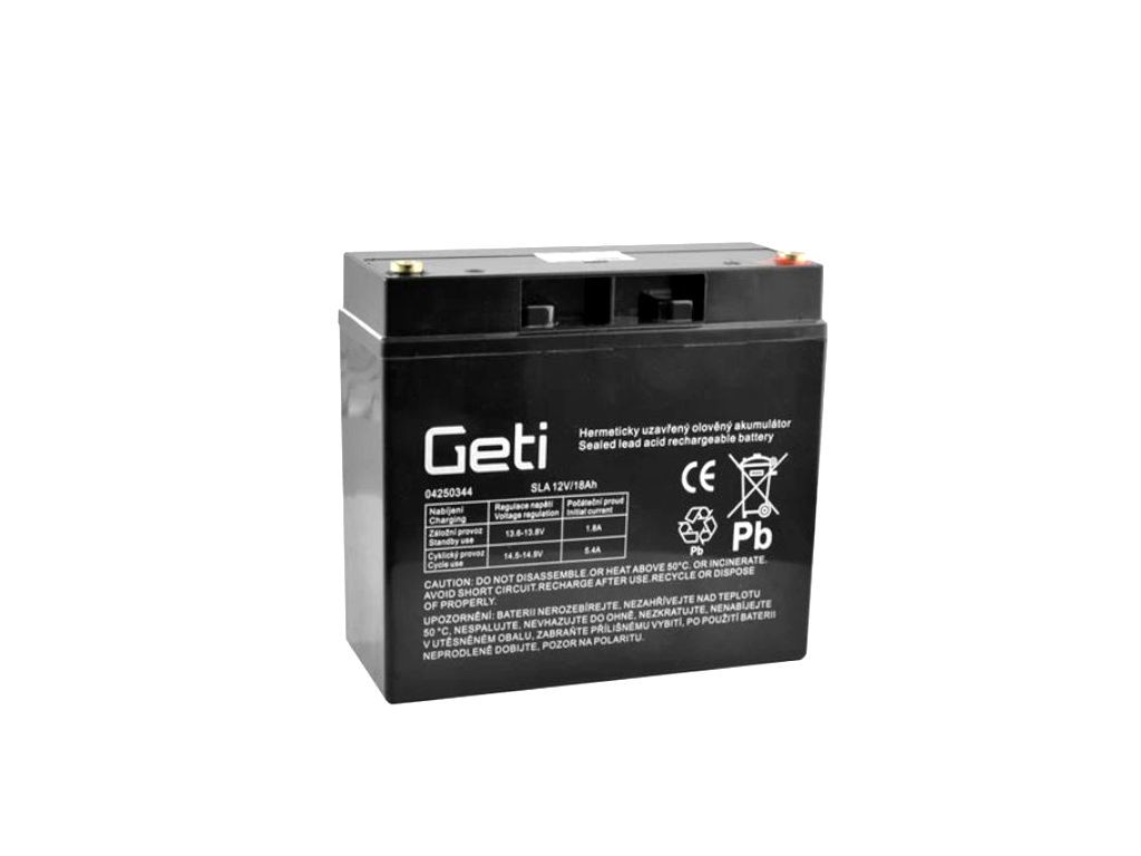 Olověný akumulátor 12V 18Ah AGM GetiOlověný bezúdržbový akumulátor Geti typu AGM je vyroben v premiové kvalitě. Tento akumulátor je ideální jako náhrada za baterie pro záložní systémy UPS, záložní zdroje pro aplikace EZS, EPS a telekomunikace, záložní svítidla, nabíjecí svítilny, hračky, řídící systémy, alarmy a výstražná mobilní signalizační zařízení. Je hermeticky uzavřený, což umožňuje použití v libovolné pracovní poloze.