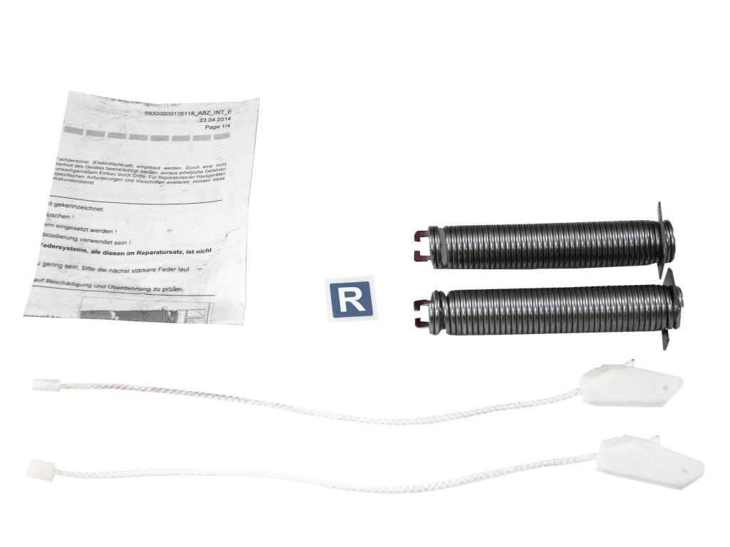 Opravná sada brzdy dveří myčky 00754873 BOSCH / SIEMENS Originální díl pro opravu brzdy dveří myčky nádobí. Sada obsahuje 2 x lanko a 2 x pružina, které jsou nezbytné pro správnou funkci dveří myčky. Alternativní díl je k dispozici pod objednacím kódem: W000542200.