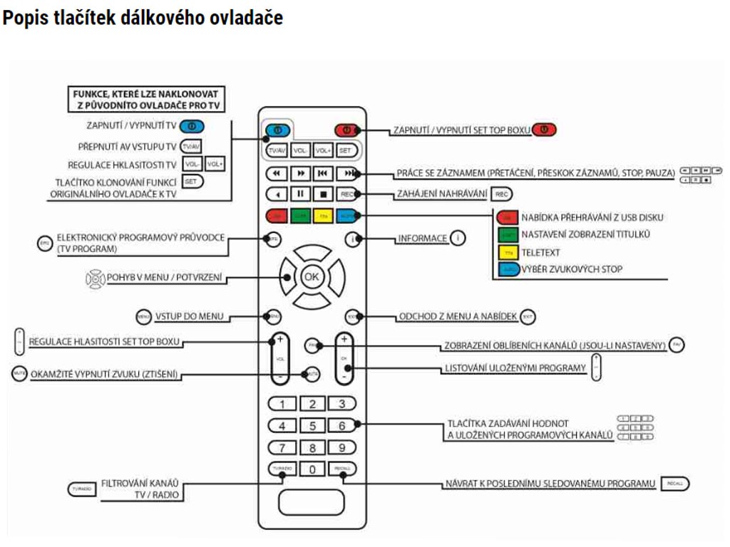 Dálkový ovladač pro set-top boxy EMOS EM190, EM190S a EM190L