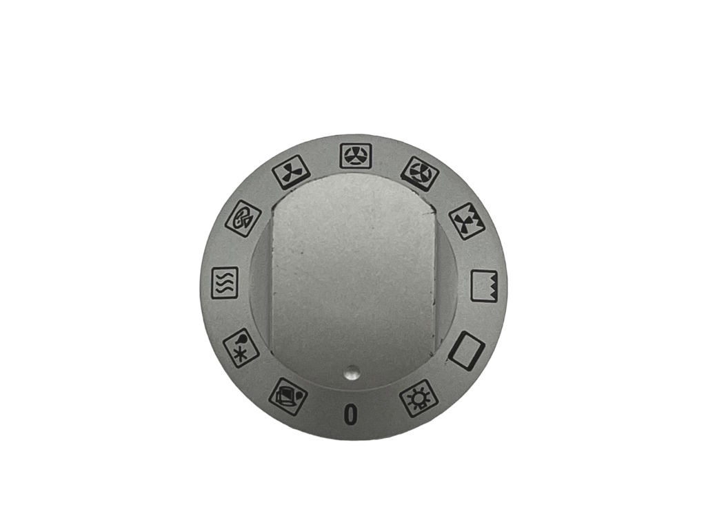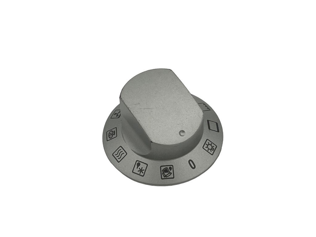 Ovládací knoflík slouží k přepínání funkcí trouby a je kompatibilní s modely značek Mora a Gorenje. Tento stříbrný knoflík je navržen pro snadné ovládání a přesné nastavení teploty.