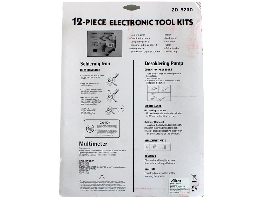 Pájecí sada ZD-920D s multimetrem 12 v 1Tato pájecí sada ZD-920D obsahuje vše potřebné pro efektivní pájení a měření. Sada zahrnuje: