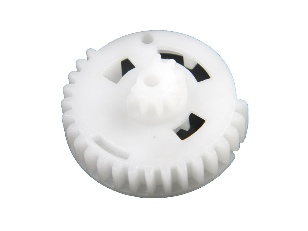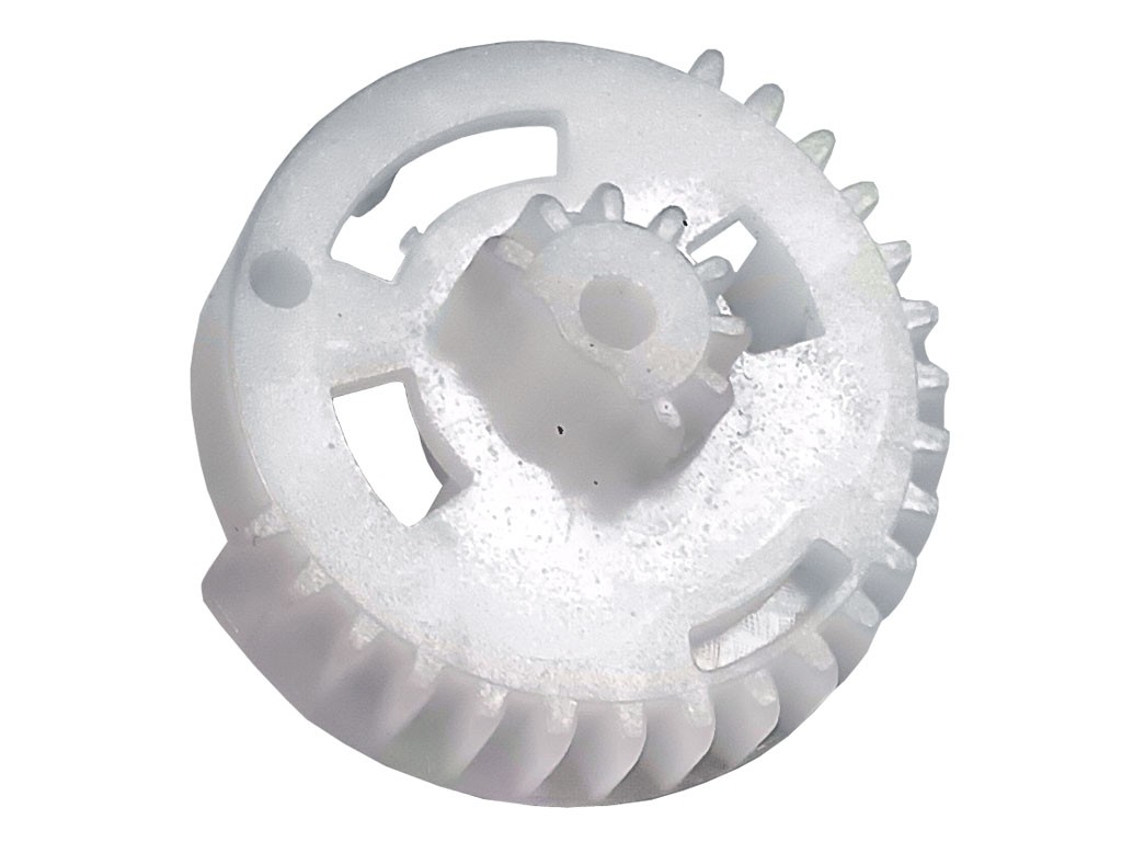 Toto kolo má ozubení, které zapadá do kovové lišty, což zajišťuje stabilní a přesné vyvážení.
