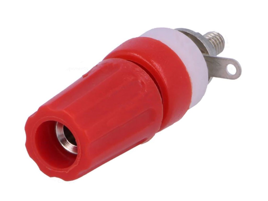Panelová zdířka banánek 15A - červená CL1506Panelová zdířka banánek je určena pro instalaci na panel a nabízí spolehlivé připojení v různých aplikacích. Tato zdířka je vhodná pro jmenovitý proud 15A a jmenovité napětí 250V DC.