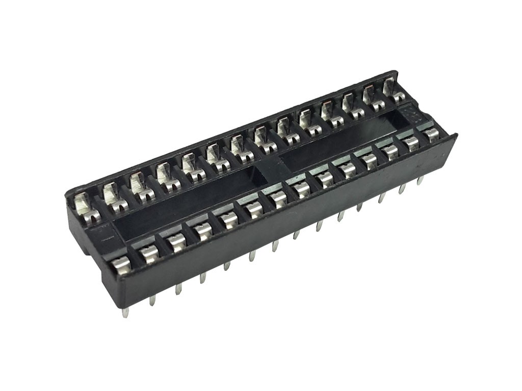 Patice 2x14 DIL je navržena pro použití v elektronických obvodech a nabízí úzké provedení s 28 piny.