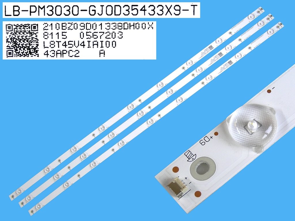 Philips LED podsvit 838mm sada GJ0D35433X9-T pro 43" LCD panelLED podsvit pro LCD TV 43" PhilipsLED podsvit pro LCD televizory s LED backlight 200mA. Tato kompletní sada obsahuje všechny podsvity potřebné pro 43" panely Philips / TPV. Originální náhradní díl značky Philips.