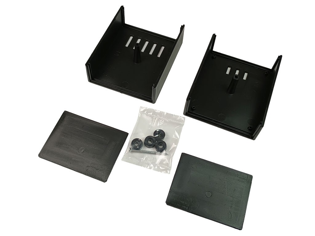 Plastová čtyřdílná krabička KP 4 je navržena pro snadnou montáž a spojení pomocí jednoho vrutu. Tato univerzální krabička je ideální pro různé aplikace v oblasti elektroniky a automatizace.