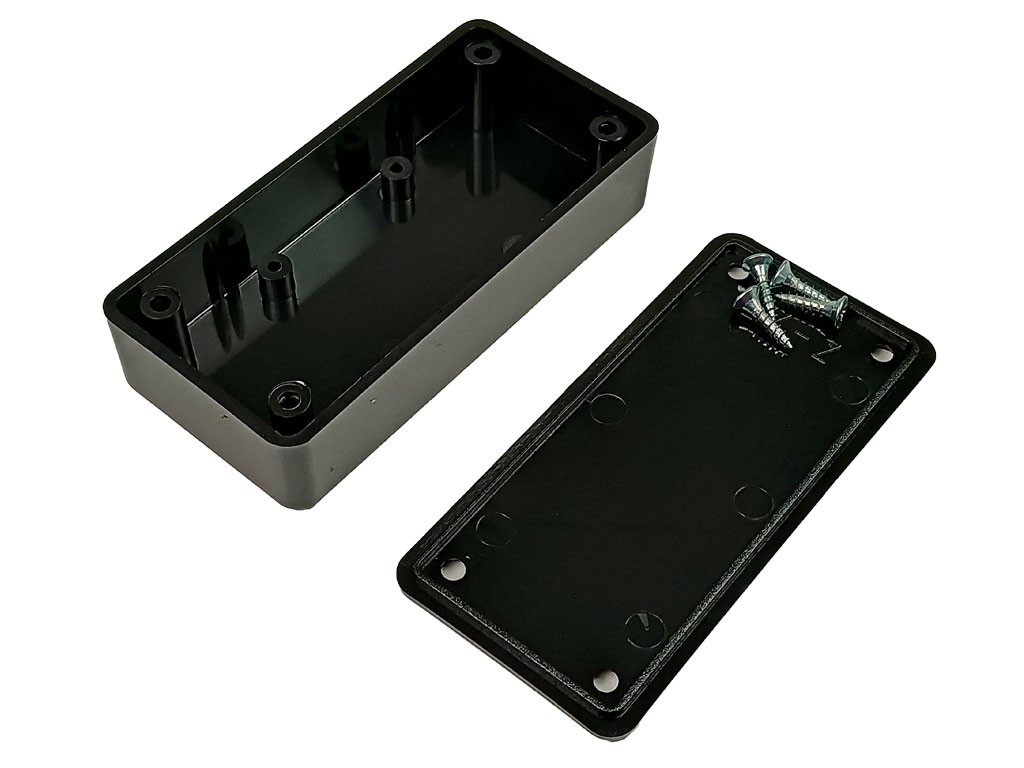 Plastová dvoudílná krabička KP 75 se spojuje čtyřmi vruty, což zajišťuje bezpečné a pevné uchycení. Tato univerzální krabička je ideální pro různé aplikace v oblasti elektroniky a techniky.