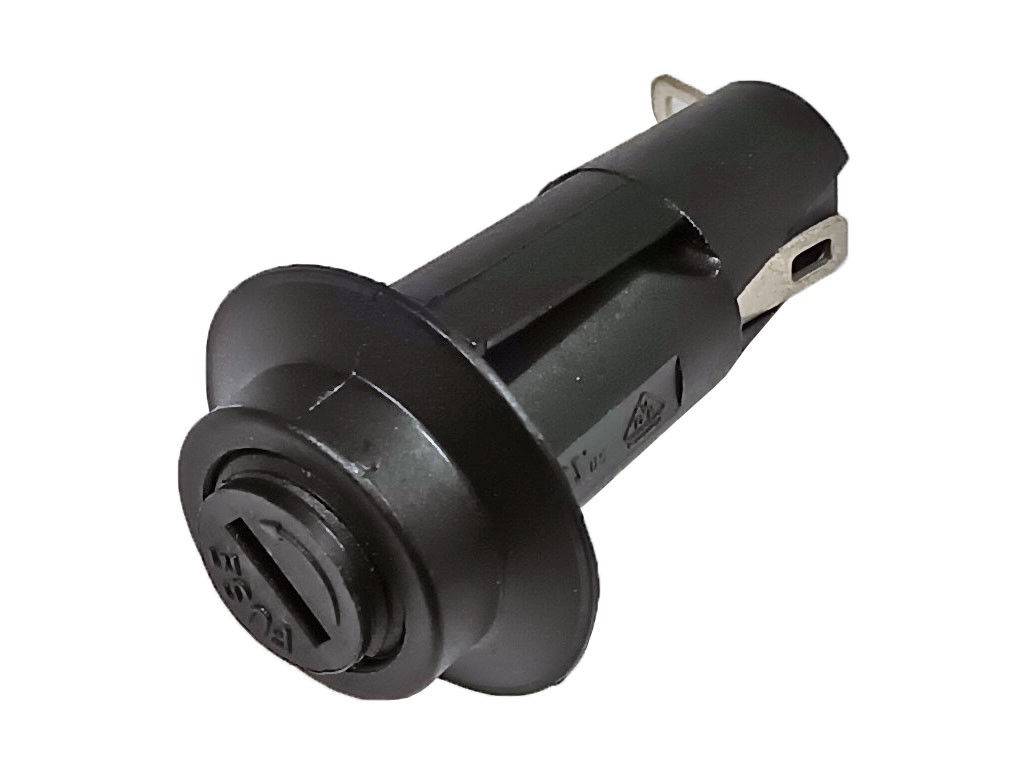 Pojistkový držák pro pojistky 5x20mm, max. proud 10A, otvor průměr 12.7mm.