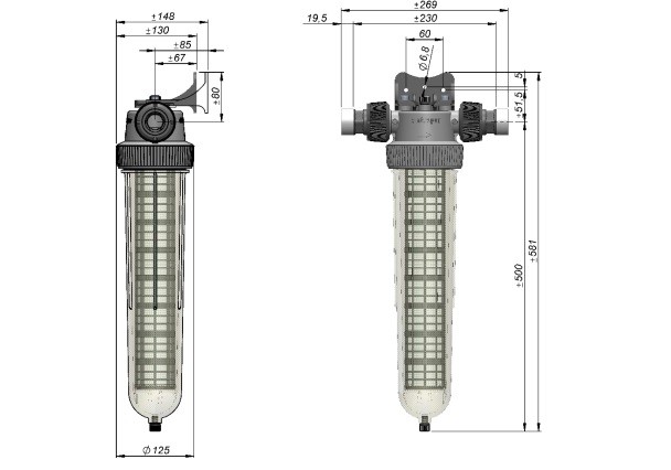 Každý filtr Cintropur je dodáván s dvěma plastovými šroubeními pro snadnou instalaci, utahovacím klíčem a jednou filtrační "ponožkou" o velikosti 25 mikronů.