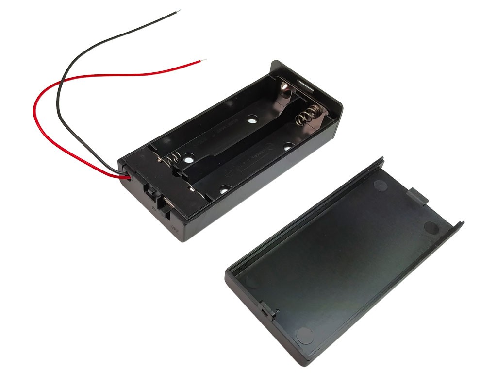 Praktické pouzdro pro dvě lithium-iontové baterie 18650 uspořádané vedle sebe. Tento držák je navržen pro snadné použití a připojení. Obsahuje vypínač pro pohodlné ovládání napájení a vývod pro snadné připojení vodičů. Ideální pro projekty, kde je potřeba spolehlivé a efektivní napájení.
