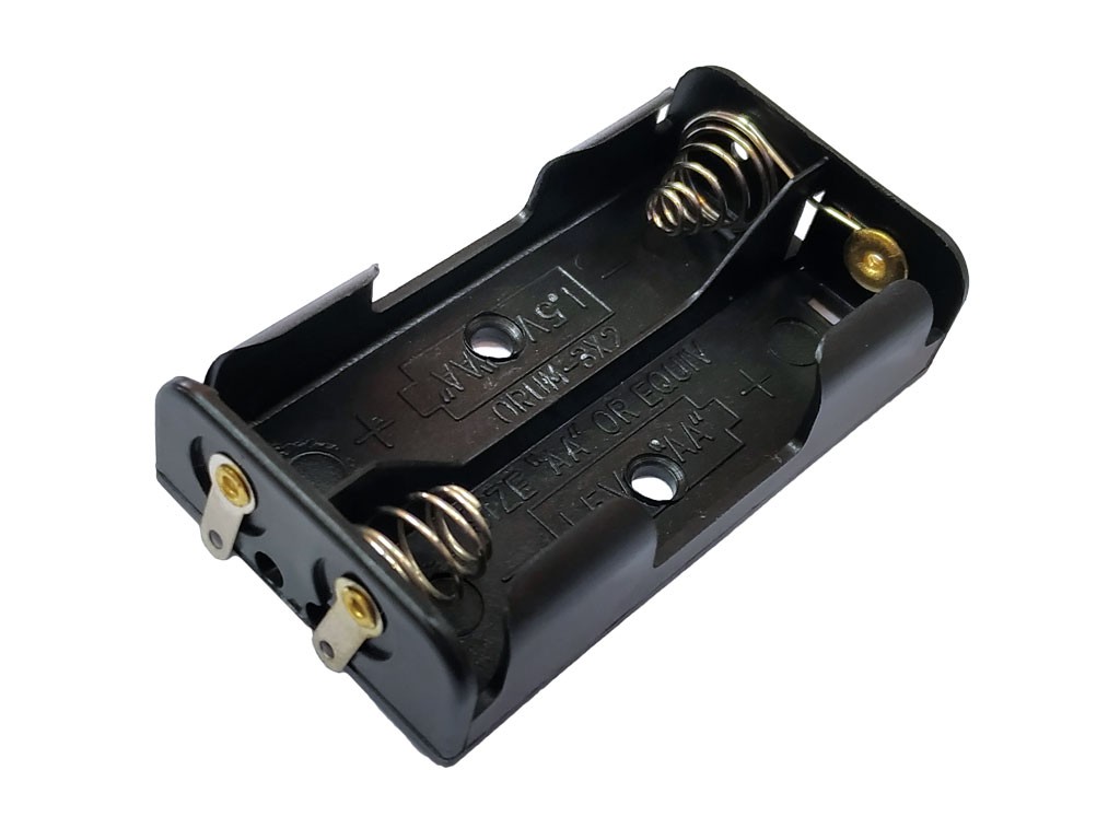 Držák je určen pro dvě baterie typu AA (R6) a je vyroben z plastu v černé barvě. Díky pájecím očkům je instalace snadná a rychlá.