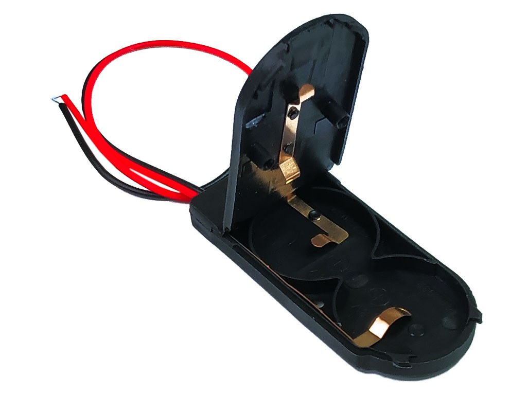 Praktické pouzdro pro uchování dvou baterií typu CR2032. Toto pouzdro je vyrobeno z kvalitního plastu a je černé barvy. Vybaveno vypínačem pro snadné ovládání napájení a vodičem pro připojení k zařízení.