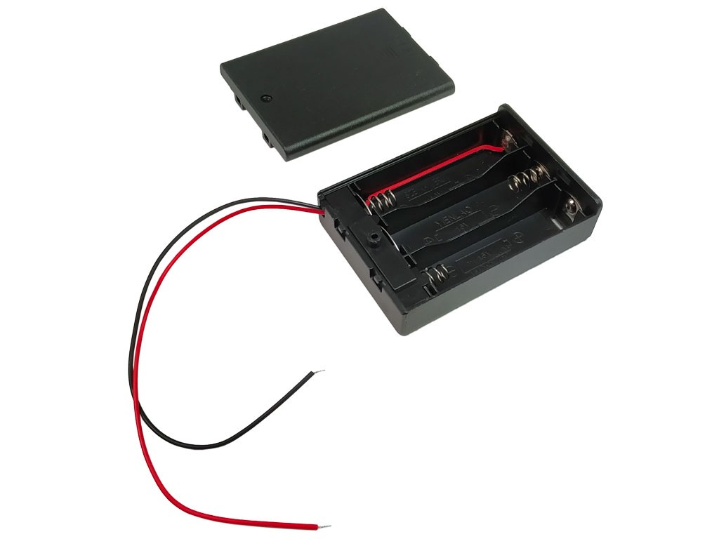 Účelné pouzdro na baterie určené pro tři AA baterie, vyrobené z plastu. Tento držák je vybaven praktickým vypínačem pro snadné ovládání. Díky vývodu vodiče je instalace jednoduchá a rychlá.