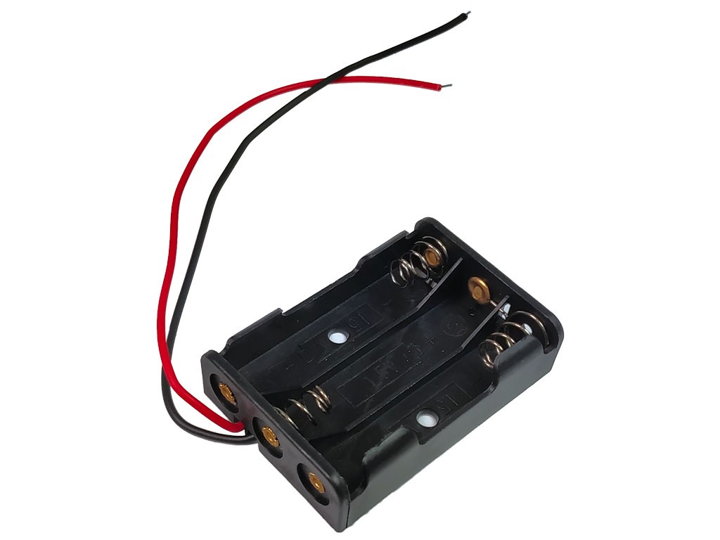 Toto pouzdro je určeno pro uchování a použití tří AAA baterií vedle sebe. Je vyrobeno z kvalitního plastu a nabízí spolehlivý vývod vodiče pro snadné připojení. Ideální volba pro projekty, kde je potřeba napájení z baterií.