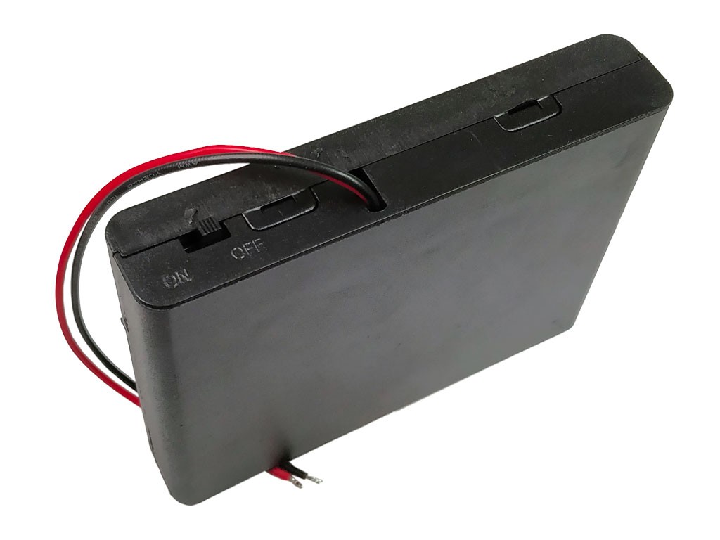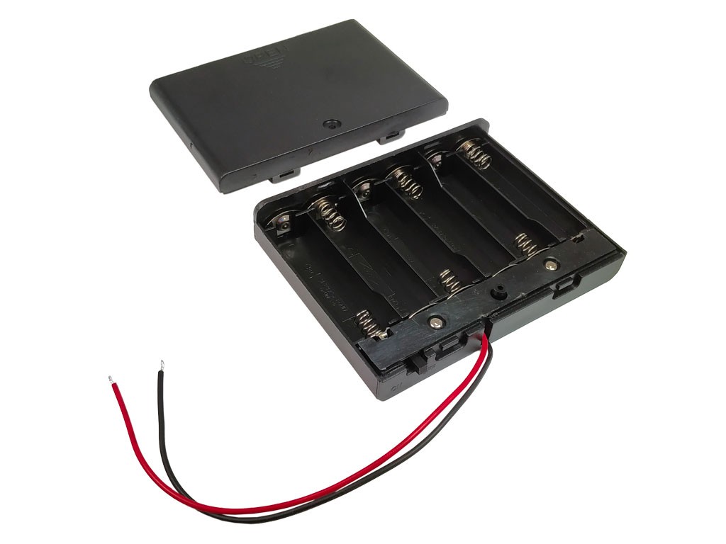 Praktické pouzdro pro uchování šesti baterií typu AA. Toto pouzdro je vyrobeno z kvalitního plastu a je černé barvy. Obsahuje integrovaný vypínač, který umožňuje snadné ovládání napájení a vývod vodiče pro připojení k dalším komponentům.
