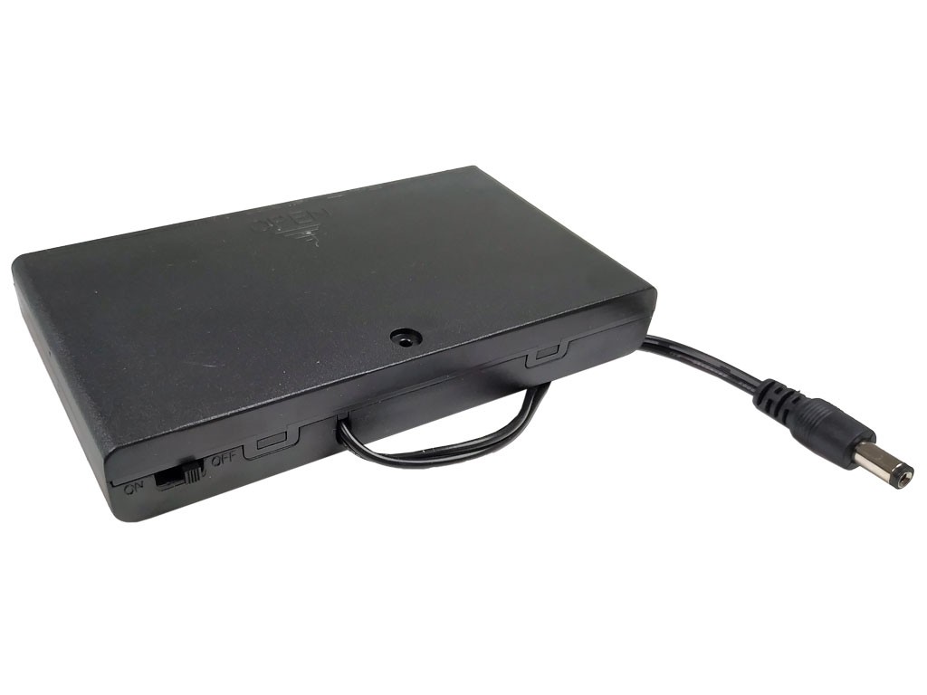 Praktické pouzdro určené pro umístění osmi baterií typu AA vedle sebe. Toto pouzdro je vybaveno vypínačem, který umožňuje snadné ovládání napájení. Součástí je vývod vodiče s konektorem 5.5 x 2.1mm, což zajišťuje jednoduché připojení k různým zařízením.