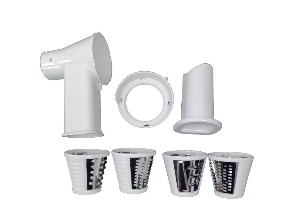 Kompletní přídavný strouhač určený pro roboty značky Eta. Tento strouhač obsahuje různá struhadla, která umožňují efektivní a rychlé zpracování surovin.