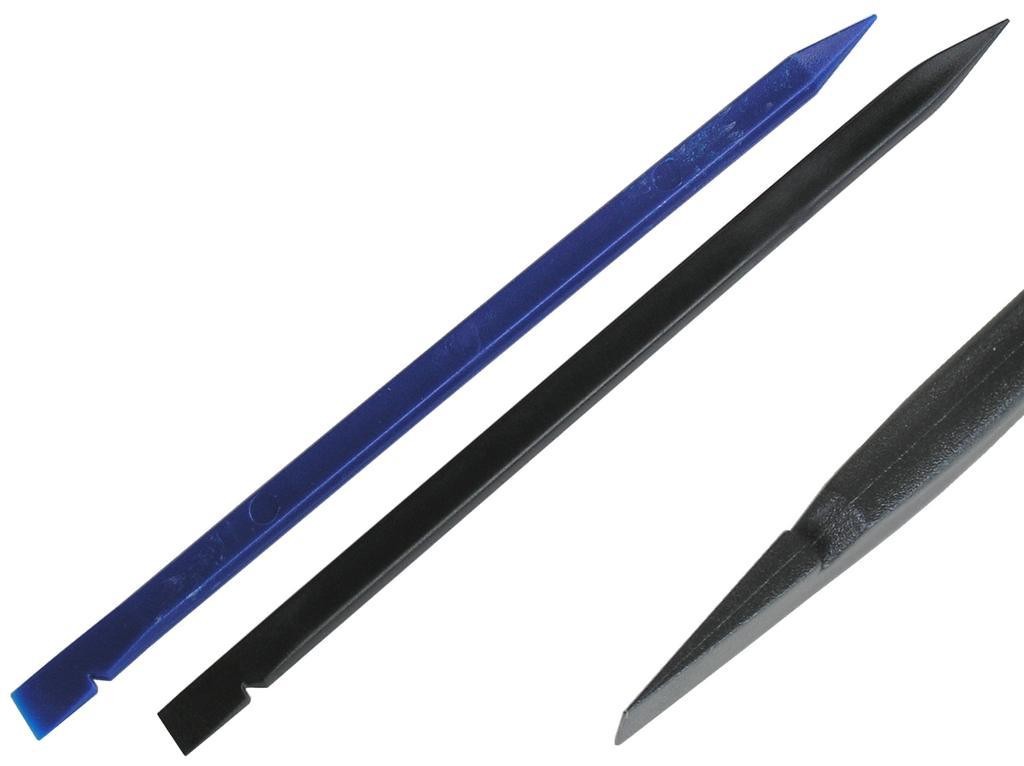 Demontážní nářadí o rozměrech 150 x 6 x 4 mm slouží k bezpečné demontáži plastových krytů, například u dálkových ovladačů nebo jiných zařízení, jejichž kryty jsou uchyceny na západkách. Tento přípravek je vyroben z vysoce pevného a kluzkého plastu, který umožňuje snadné pronikání mezi plastové zámky bez rizika poškození. V případě opotřebení hrotu je možné nářadí opětovně nabrousit do požadovaného úhlu.