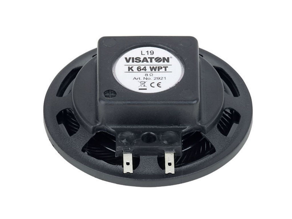 Reproduktor VISATON K 64 WPT s impedancí 8 Ohm a výkonem 3W, mylarový, vodotěsný, průměr 64mm.