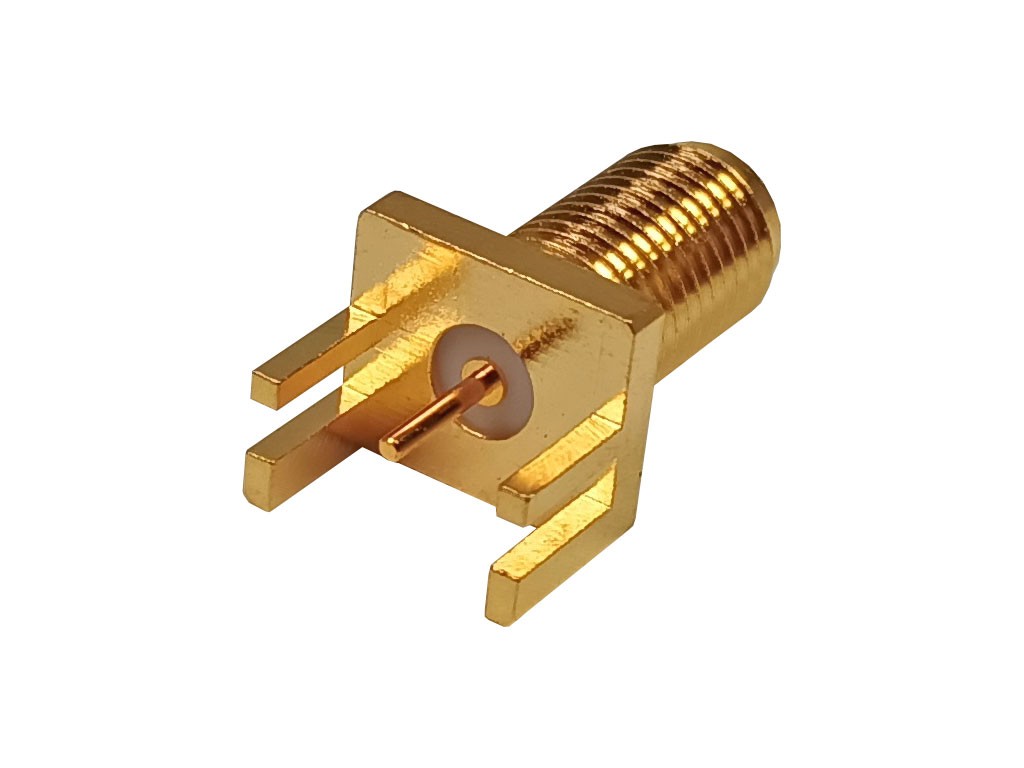 Reverzní R-SMA 50Ohm. zásuvka (f) určená do panelu nebo na hranu desky PCB. Tento úhlový konektor je pájecí a umožňuje připojení k panelu, kde lze kabel připájet. Jedná se o reverzní samici / zásuvku, která je navržena pro spolehlivé připojení.