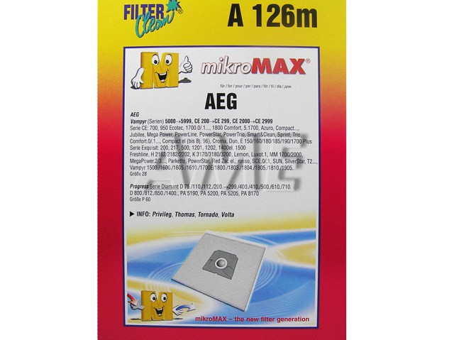 Sáčky do vysavače AEG a PROGRESS AE23 A126 mSada obsahuje 5 kusů sáčků a 1 mikrofiltrTyto sáčky jsou kompatibilní s následujícími modely vysavačů: