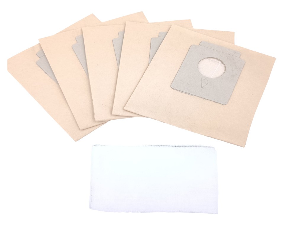 5 ks papírových sáčků a mikrofiltry pro efektivní vysávání.