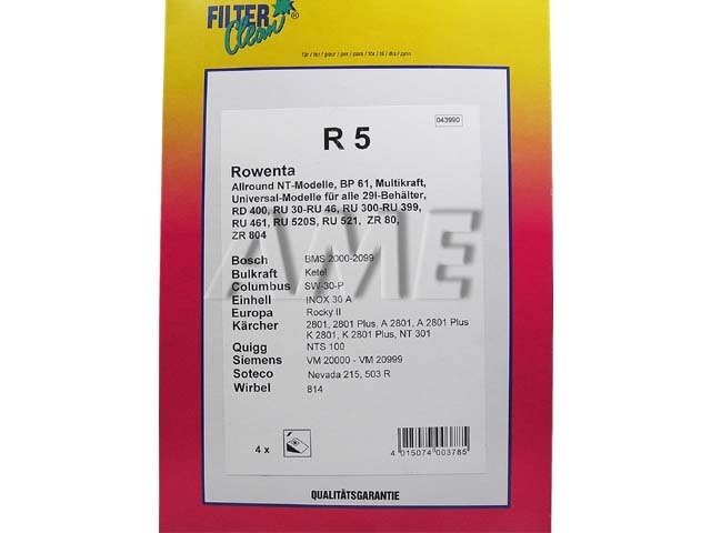 Tyto sáčky do vysavače ROWENTA R5 jsou navrženy pro širokou škálu modelů, což zaručuje jejich univerzálnost a efektivitu. Obsahují 4 kusy, které zajistí dlouhotrvající výkon vašeho vysavače.