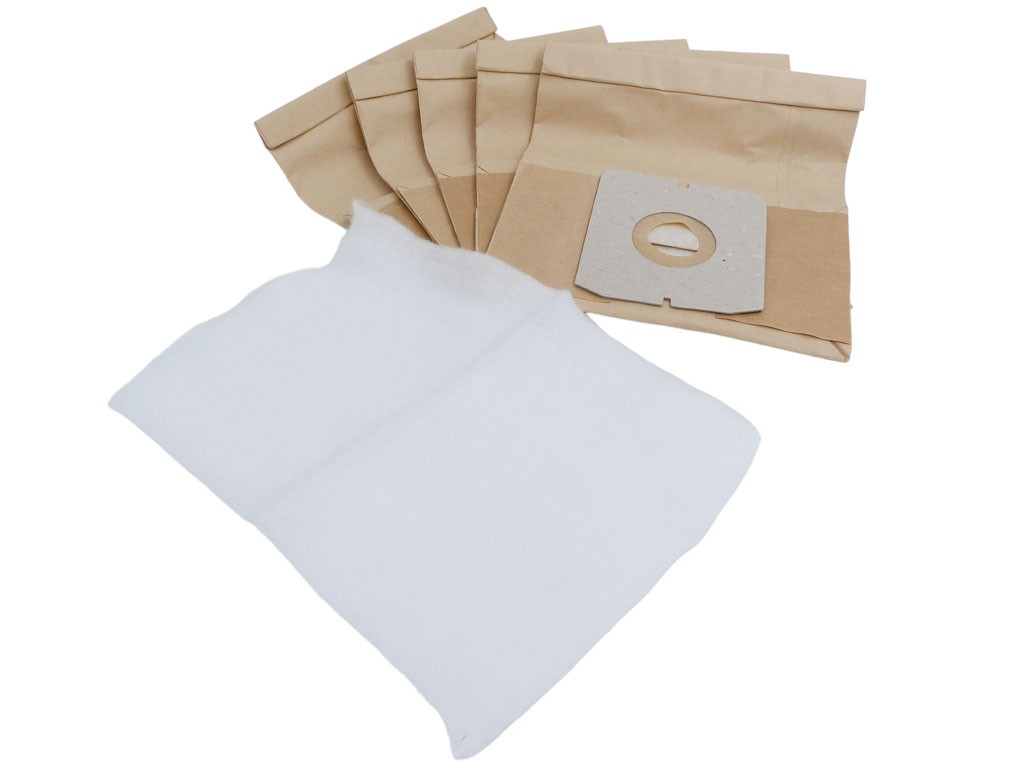Tento balíček obsahuje 5 papírových sáčků do vysavače a 1 mikrofiltr. Sáčky jsou navrženy pro efektivní sběr prachu a nečistot, což zajišťuje optimální výkon vašeho vysavače.