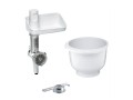 Masomlýnek je možné využít také na mletí masa, zpracování ryb a zeleniny, například na tatarák nebo pomazánky. Sada obsahuje děrovaný nerezový kotouč (průměr 4,5 mm) a nůž, stejně jako nástavec na výrobu stříkaného pečiva. Plastová mísa pojme až 1 kg mouky a dalších přísad, přičemž maximální kapacita závisí na výkonu motoru kuchyňského robota.