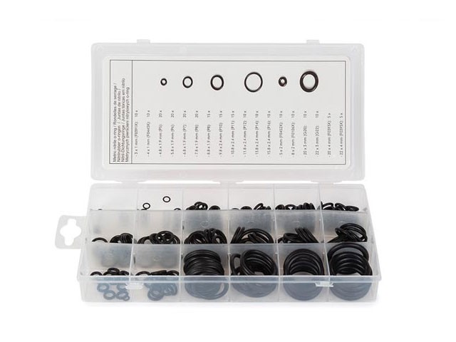 Tato sada obsahuje 225 ks nitrilových O-kroužků v 18 nejpoužívanějších velikostech, které jsou ideální pro různé úkoly v oblasti těsnění. Nitrilové kroužky jsou odolné vůči teplu, většině ropných a silikonových kapalin a rozpouštědlům, což zajišťuje jejich široké využití. Kroužky jsou uspořádány v praktickém pořadači, což usnadňuje jejich skladování a přístupnost.