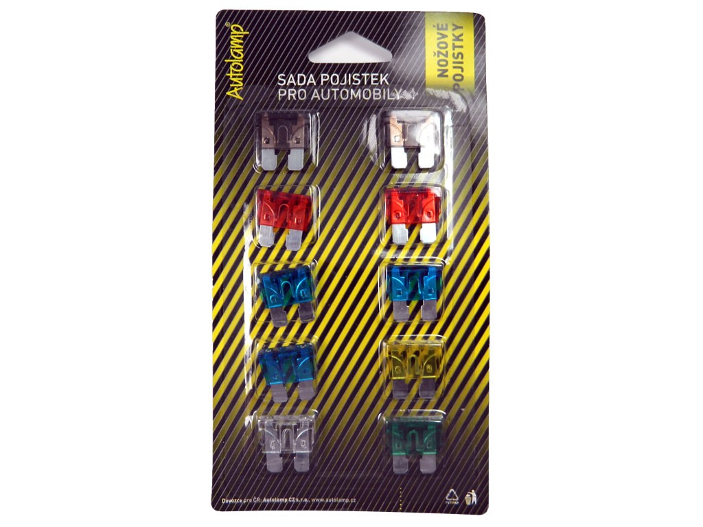 Tato sada obsahuje nožové pojistky pro automobilové aplikace. Pojistky jsou klíčovým prvkem pro ochranu elektrických obvodů a zařízení v automobilech. V balení naleznete: