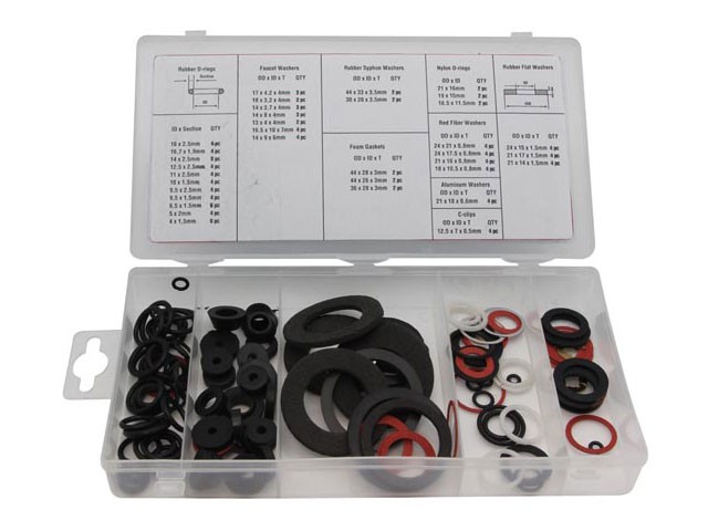Sada těsnění a O-kroužků 125 ksPraktická opravná sada pro údržbu v kuchyni, koupelně a dalších prostorách. Tato sada obsahuje 125 kusů různých těsnění a O-kroužků, které jsou vhodné pro opravy sifonů, kohoutků a dalších vodovodních instalací.