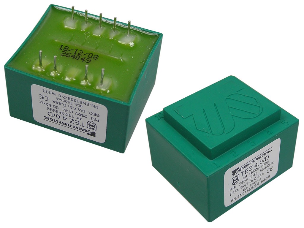 Transformátory jsou vyrobeny z jader EI s kostrami cívek s přepážkou. Jsou zality chemicky vytvrzenou pryskyřicí. Vývody a jejich rozteč odpovídají evropským standardům. Transformátory jsou určeny hlavně pro zapájení do desek plošných spojů v napájecích obvodech. Malé rozměry a kompaktní konstrukce zajišťují snadnou integraci do různých zařízení. Zvětšená odolnost vůči mechanickým a klimatickým vlivům. Napájecí napětí: 230V AC. Stupeň krytí: IP 00. Zkouška izolace primár/sekundár: min. 4000V. Tepelná třída: TA60B (teplota okolí 60°C). Není zkratuvzdorné.