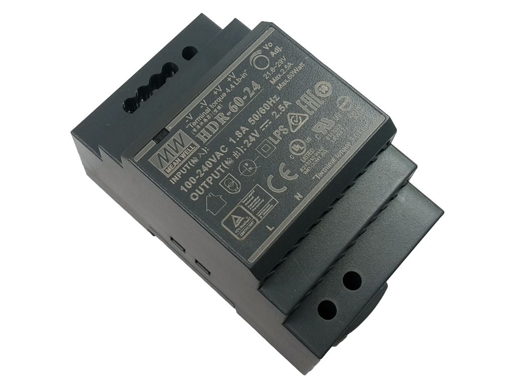 Spínaný napájecí zdroj 24V 2,5A HDR-60-24 MEAN WELLSpínaný napájecí zdroj 24V, 60W, určený na DIN lištu.Popis a parametry:Tento napájecí zdroj je navržen pro montáž na DIN lištu a patří do inovované modelové řady DR-x-x. Jeho kompaktní design a efektivní výkon jej činí ideálním pro použití v průmyslových a domácích kontrolních systémech, automatizaci budov, výrobních procesech a elektromechanických přístrojích.