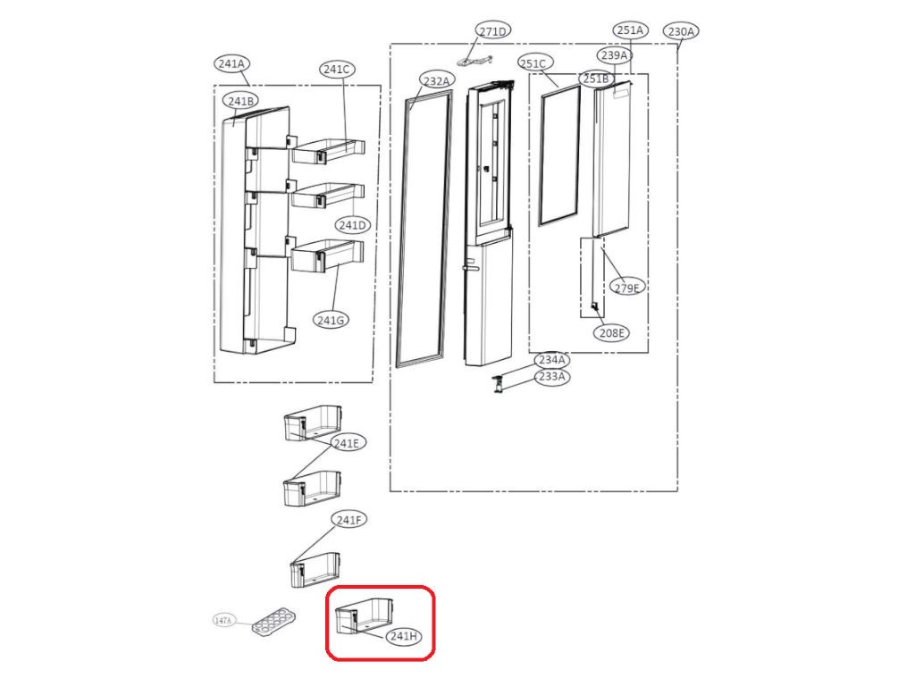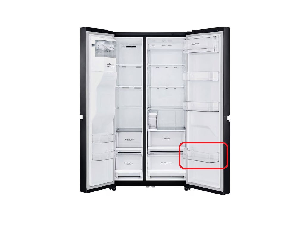 Originální náhradní police do dveří lednice s podporou lahví, model MAN63748401. Tato police je kompatibilní s několika modely lednic LG a poskytuje potřebnou oporu pro lahve a další potraviny.