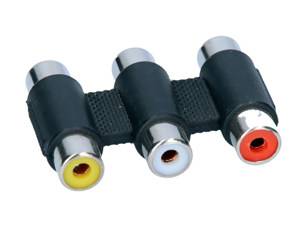 Propojení AUDIO L+R (bílý a červený) a VIDEO (žlutý) je snadné s touto spojkou. Je vyrobena z kovu a vybavena plastovým držákem pro zajištění stabilního připojení. Tato spojka je ideální pro přenos zvuku a obrazu mezi různými zařízeními.