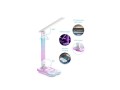 Tato lampa se vyznačuje stylovým RGB podsvícením, které dodává místnosti jedinečnou atmosféru. Barevné přechody od modré po růžovou na těle a základně lampy vytvářejí futuristický vzhled, ideální pro moderní kanceláře, studentské pokoje nebo herní koutky. Základna obsahuje dotykové ovládací prvky pro snadné nastavení jasu a režimu osvětlení.