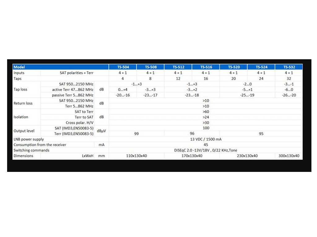Kvalitní satelitní multipřepínač určený pro připojení dvou družic a až 12 účastníků. Tento přepínač zajišťuje vynikající kvalitu signálu i při nízkých úrovních díky patentovanému spínacímu tranzistoru, který reguluje nízkou úroveň signálu.