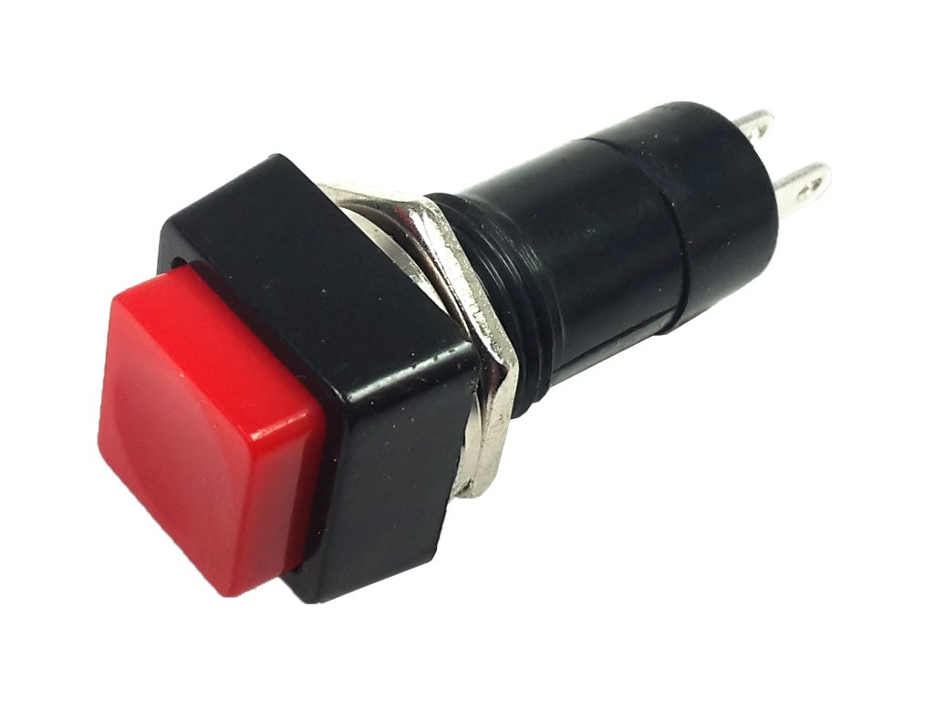 Tlačítko 250V/1A červené, 1 spínací kontakt, nearetovaný, montážní otvor prům. 12,5mm.