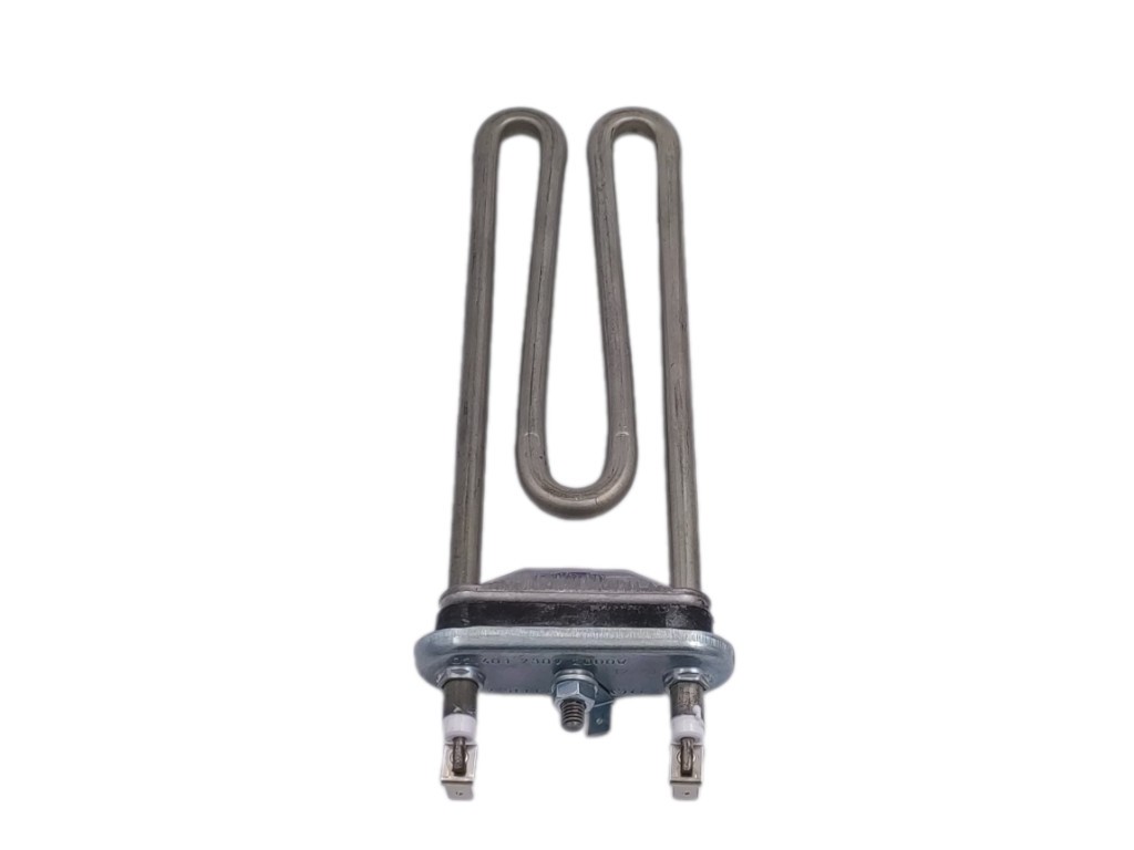 Náhradní topné těleso do pračky s výkonem 2000 W. Toto topné těleso je určeno pro různé modely praček a může se lišit v rozměrech s tolerancí +-5 mm. Je klíčovým dílem pro efektivní ohřev vody při praní.