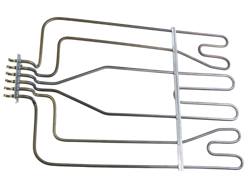 Topné těleso 3x670W ALBA dolní, nerezová ocelTopné těleso je náhradní díl pro velkokuchyňské trouby ALBA Hořovice. Tento topný článek je navržen pro efektivní a spolehlivé vytápění. Jeho konstrukce z nerezové oceli zajišťuje dlouhou životnost a odolnost vůči vysokým teplotám.