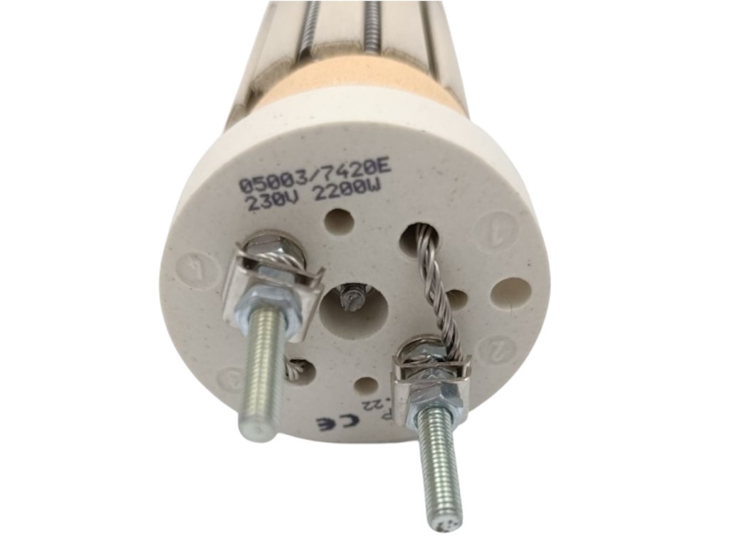 Keramické topné těleso 2200W / 230V 8 článků 50cmPopis:Keramické topné těleso pro nepřímý ohřev vody. Vhodné pro použití v ohřívačích vody, elektrokotle a dalších systémech.