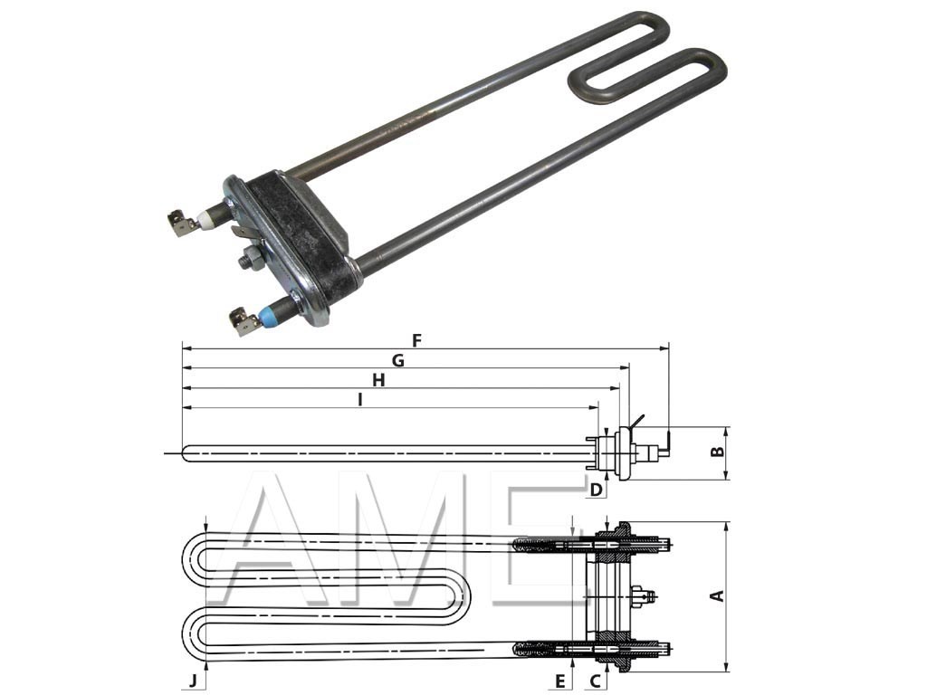 Topné těleso je určeno pro pračky CANDY a HOOVER. Jeho výkon činí 1200W a délka tělesa je 260 mm, což zajišťuje efektivní ohřev vody během praní.