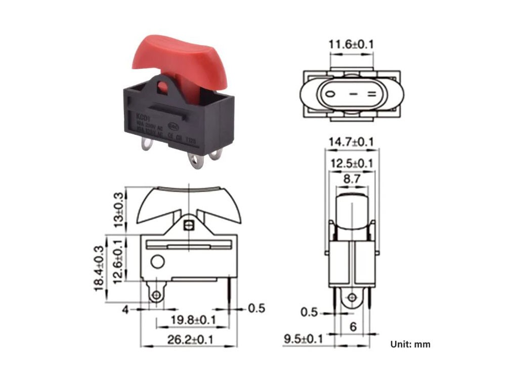 Tento třípolohový spínač fénu KCD1 slouží jako přepínač výkonu pro vysoušeče vlasů. Je navržen pro snadnou instalaci a spolehlivý provoz.