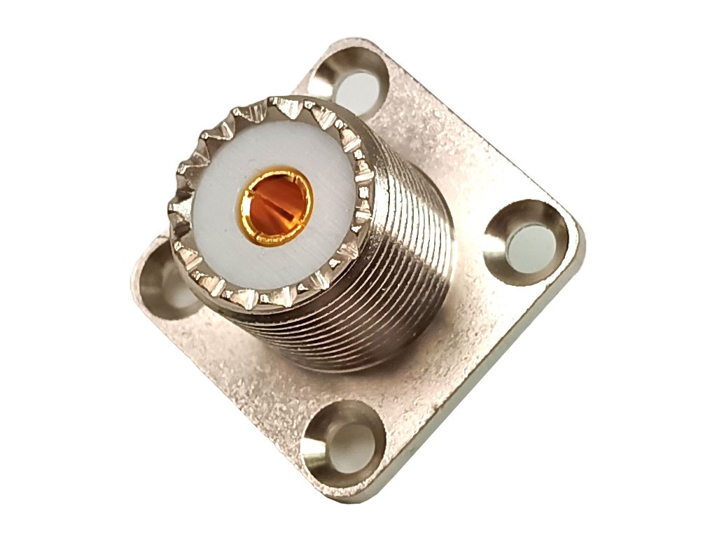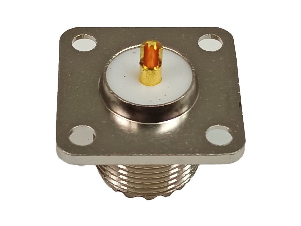 Konektor UHF (SO-239) samice do panelu přírubová, se 4 otvory.